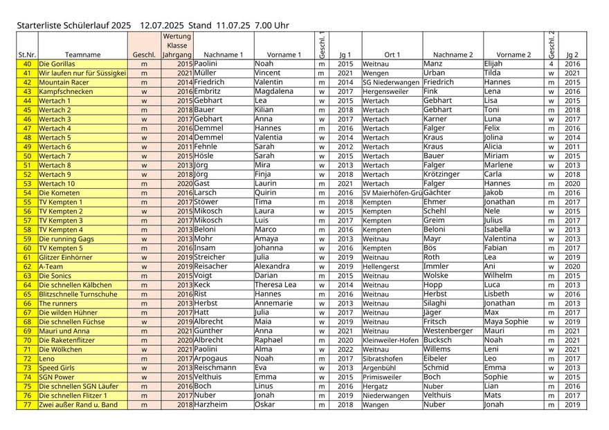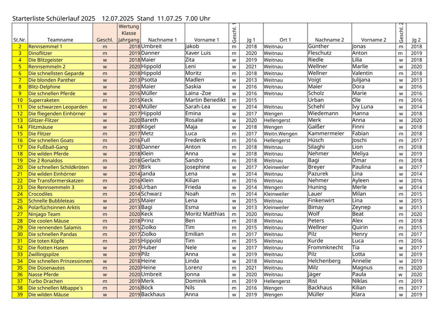 Aktuelle Anmeldeliste Schülerlauf 2025